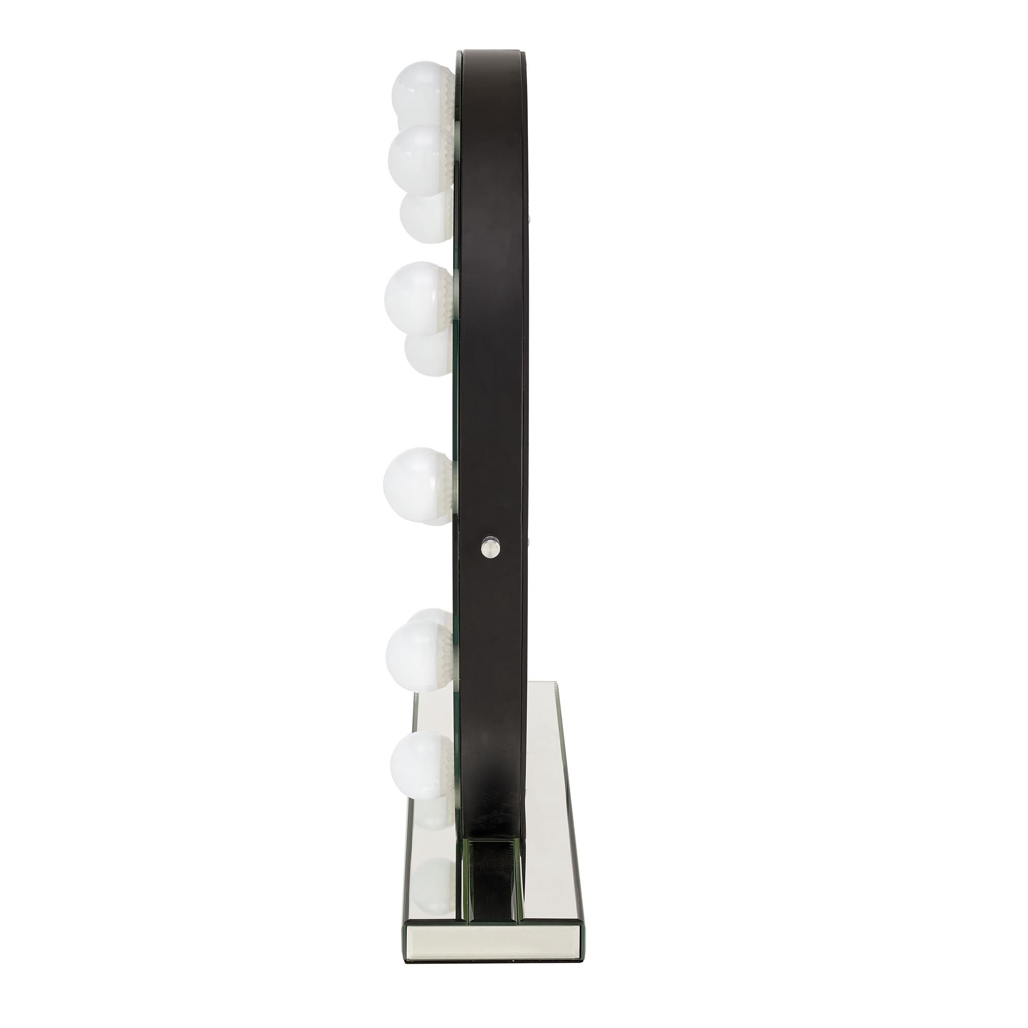 The stable MDF base supports the mirror on a table or counter. The integrated LED light provides even, natural light for makeup and daily use. The silver finish matches many interior styles.