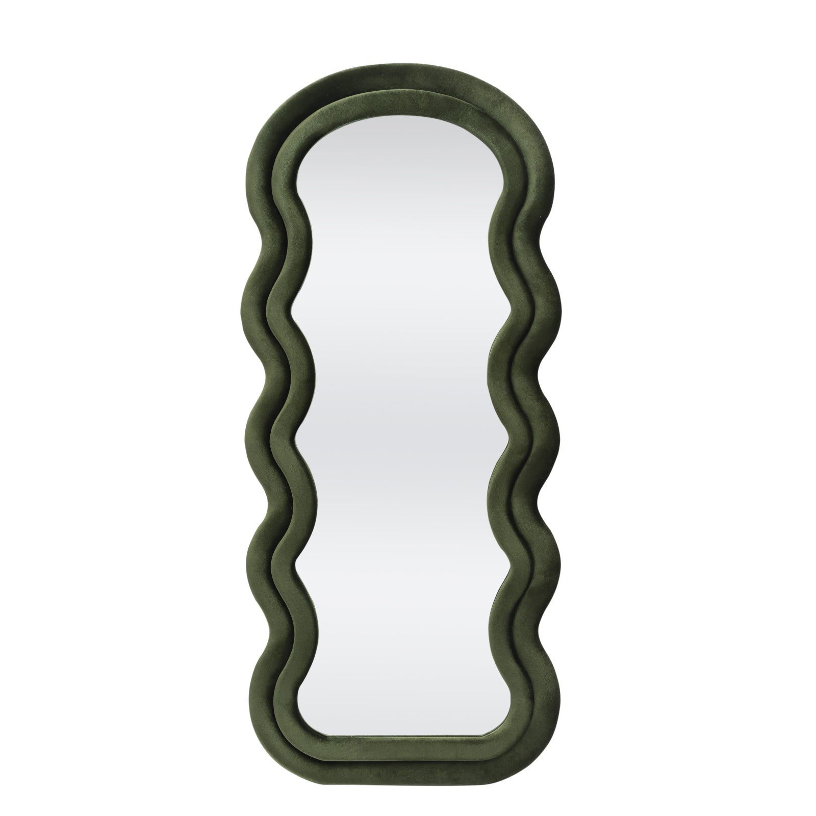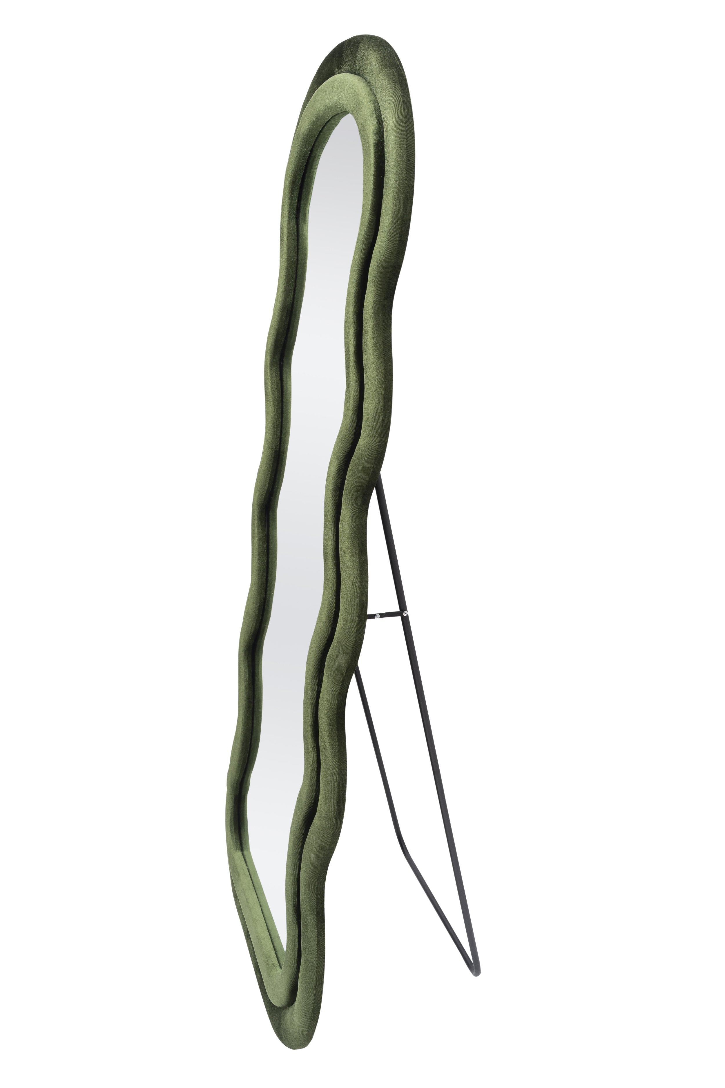 Saturno large mirror 160x70 cm, velvet frame olive green. Suitable for wall or floor. Trendy retro look and practical size.