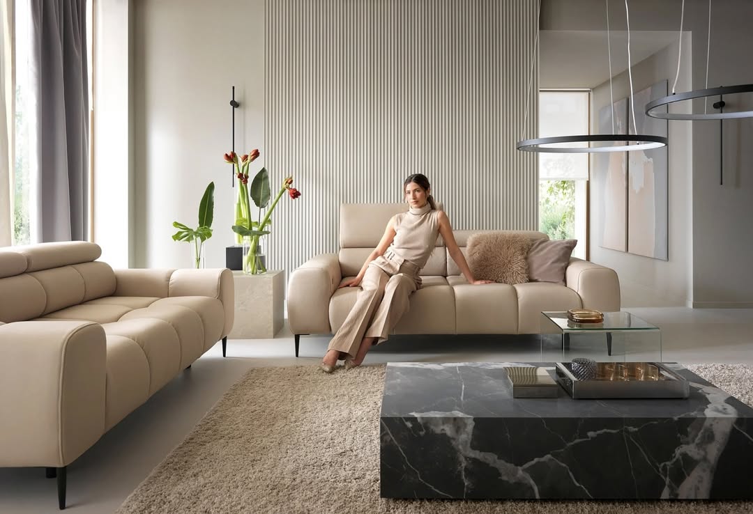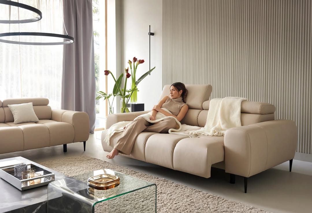 Selle vaieldamatu visuaalne mõju ühendub praktiliste omadustega, mis parandavad diivani kasutusmugavust. Diivanil on elektriliselt reguleeritav iste, mis võimaldab kohandada parimat istumismugavust, ning reguleeritav peatoe padi, mis tagab suurepärase lõõgastumishetke. Diivanid müüakse eraldi või komplektina 3+2 istekohta.