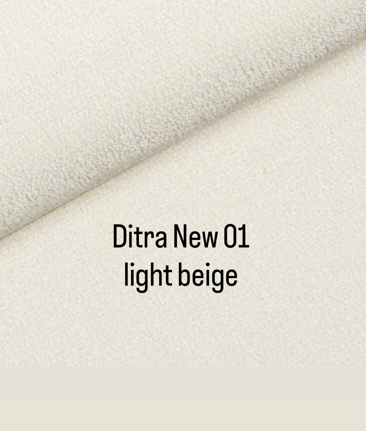 Ditra New on uudenlainen tonal chenille -kangas, jossa on hienovaraisesti rajattu melange-kudonta. Kiiltävä pituuslankaa yhdistyvät mattapintaiseen poikkilankaan, mikä antaa kankaalle moniulotteisuutta. Kangas on erittäin miellyttävä kosketuksessa ja saatavilla lämpimissä, luonnollisissa väreissä. Ditra New on helppohoitoinen ja loistava valinta myös lemmikkieläinperheisiin.