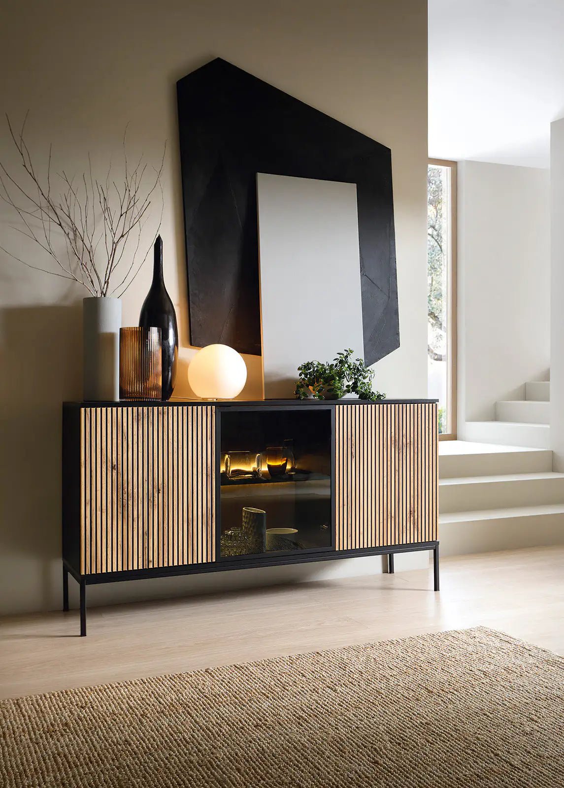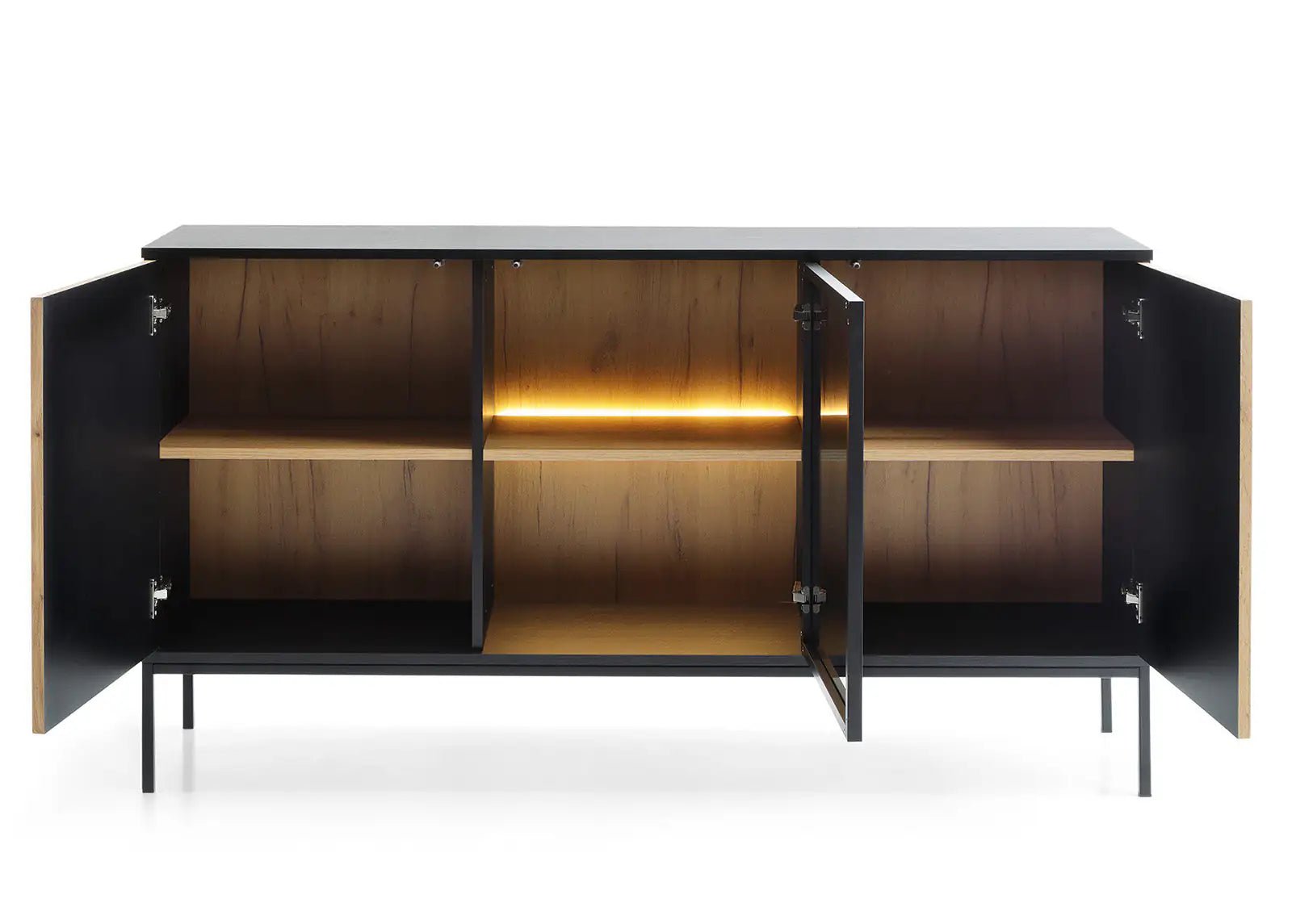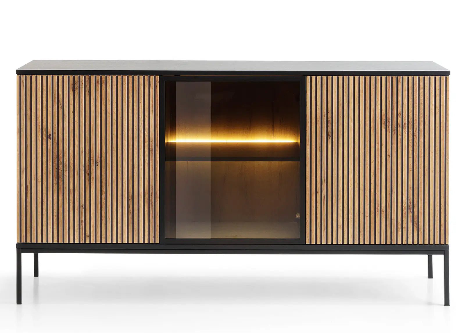 Mona senkki 154 cm - luonnonväri tammi/musta LED‑valaistuksella