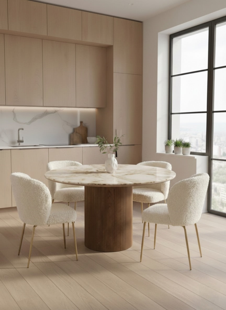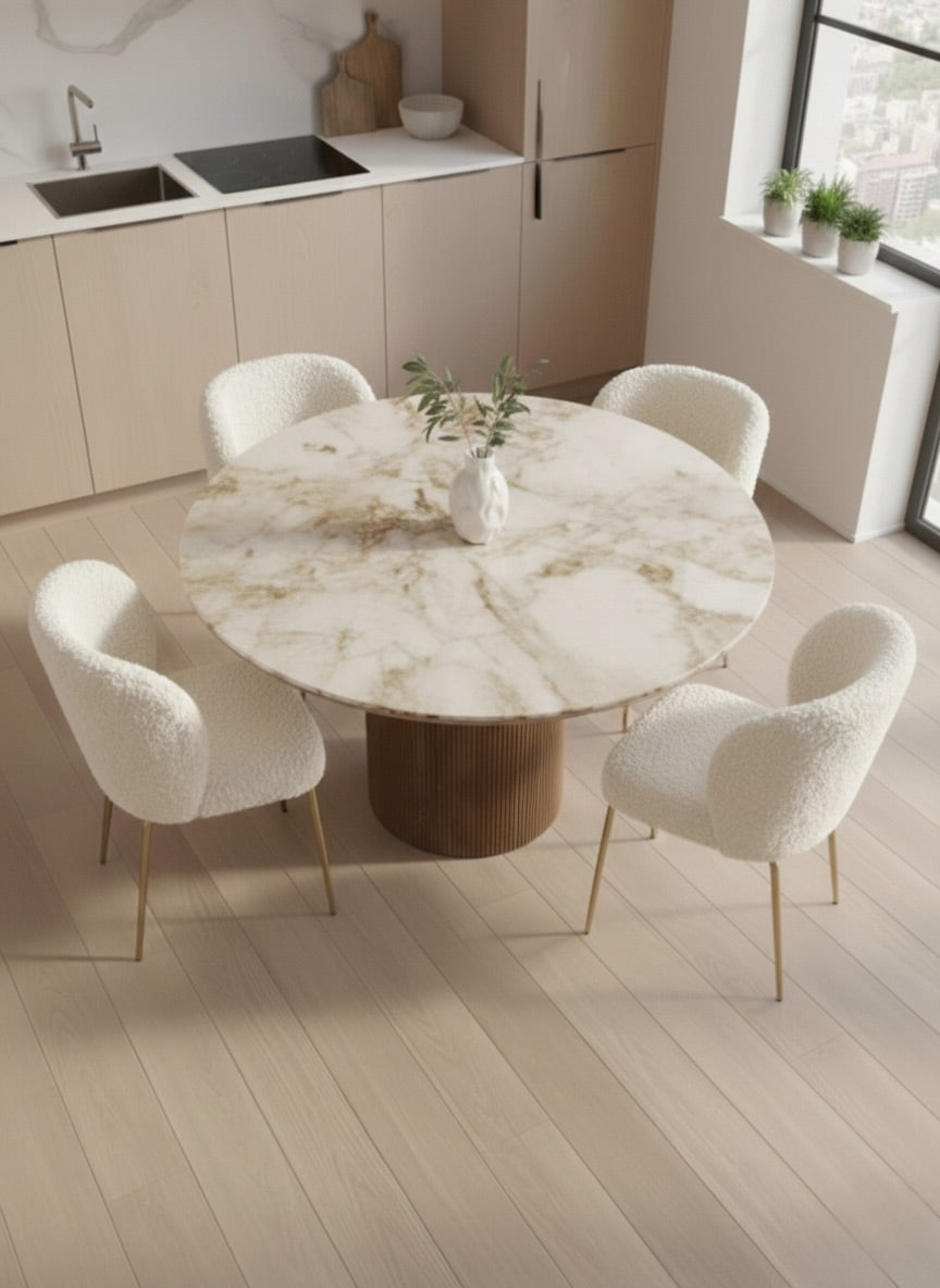 Sevilla ruokailuryhmä - pöytä + 4 Teddy tuolia