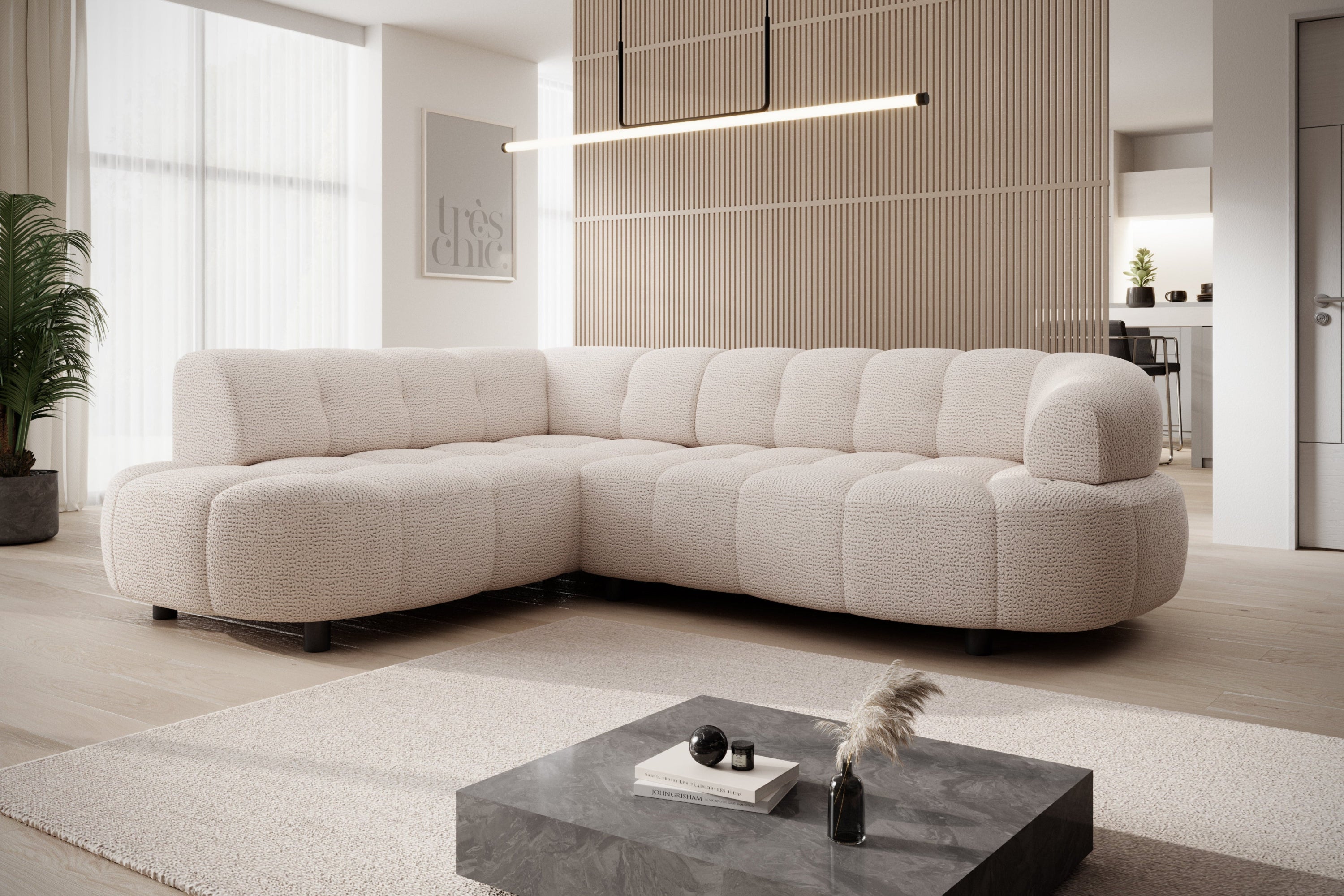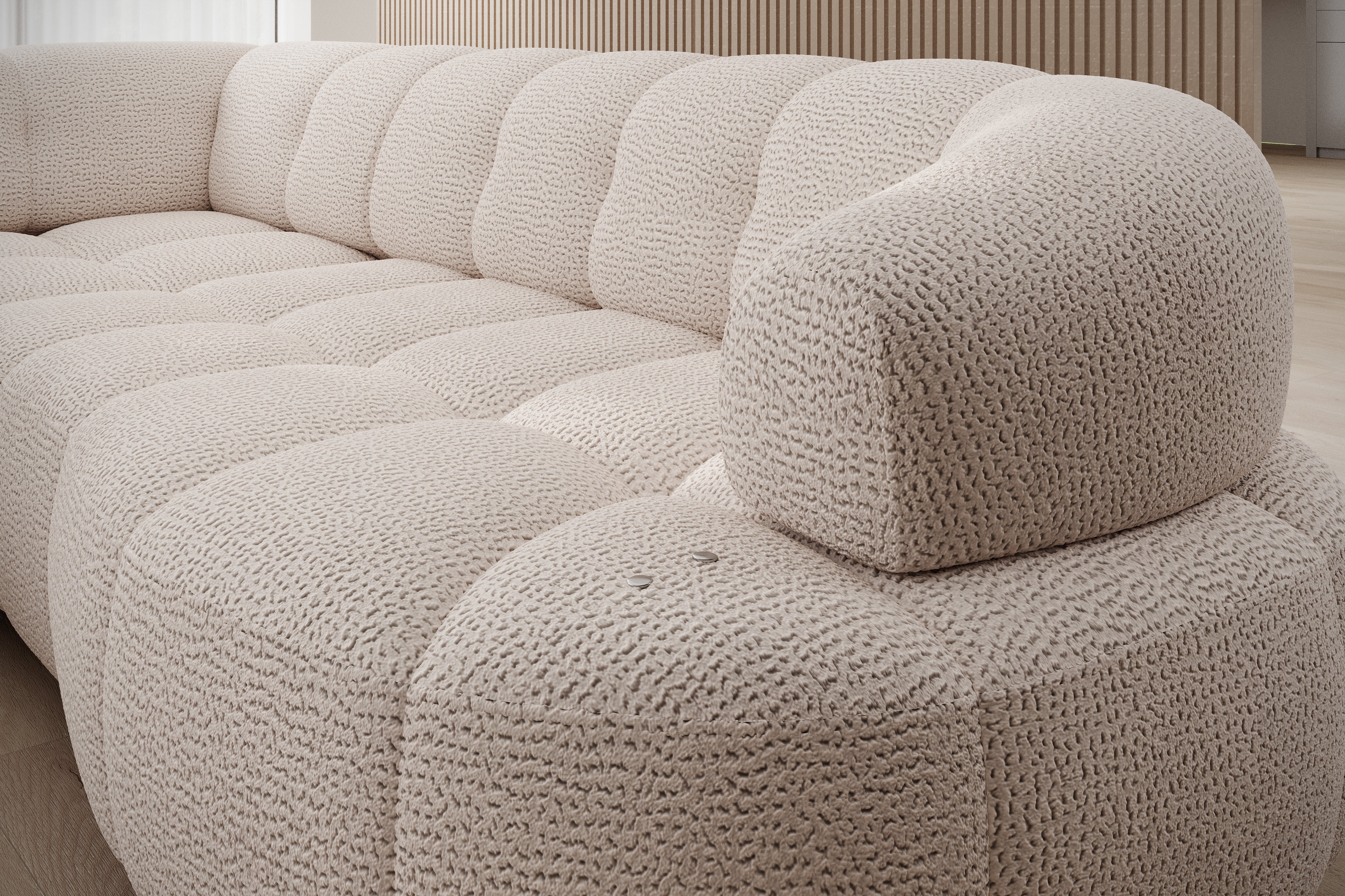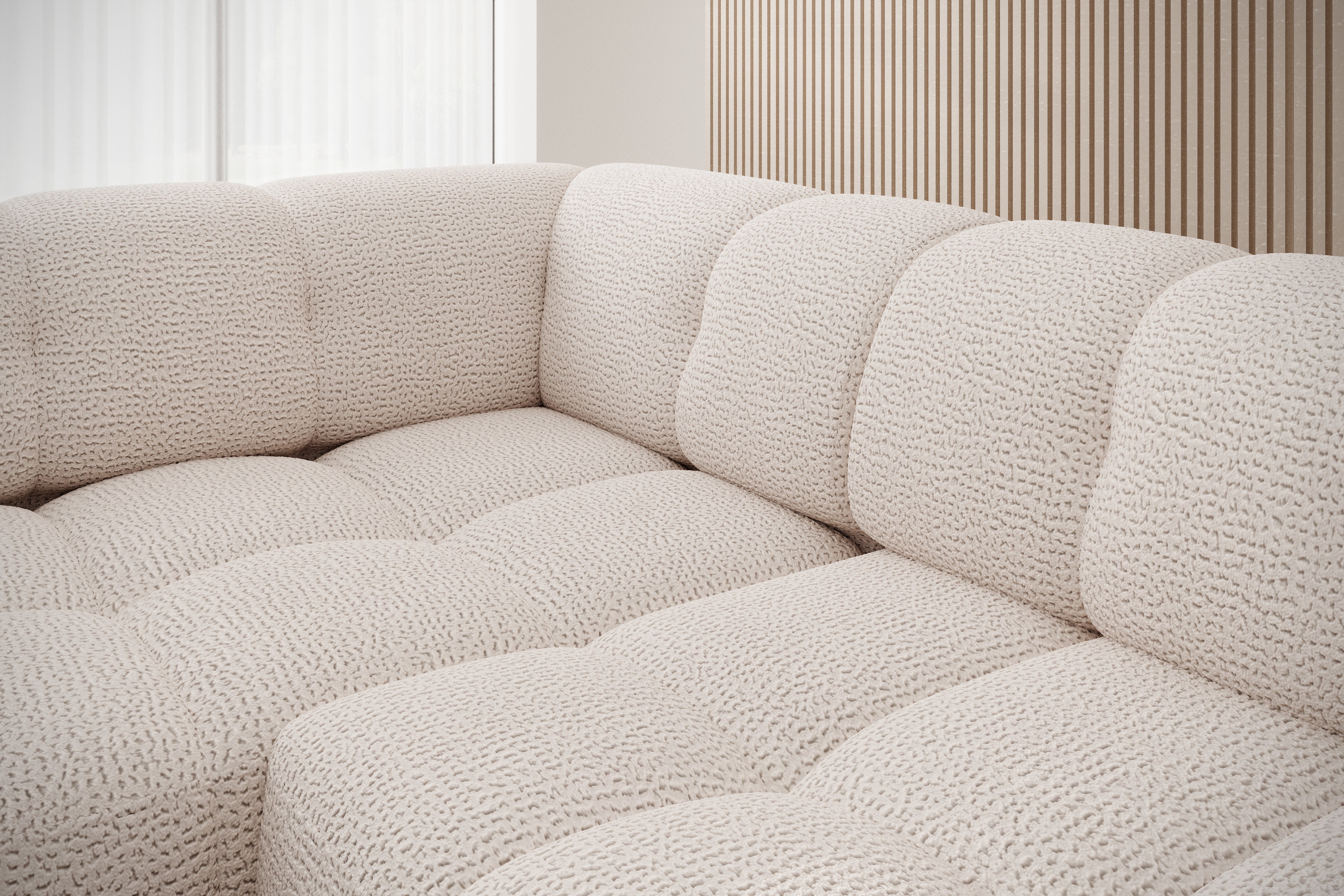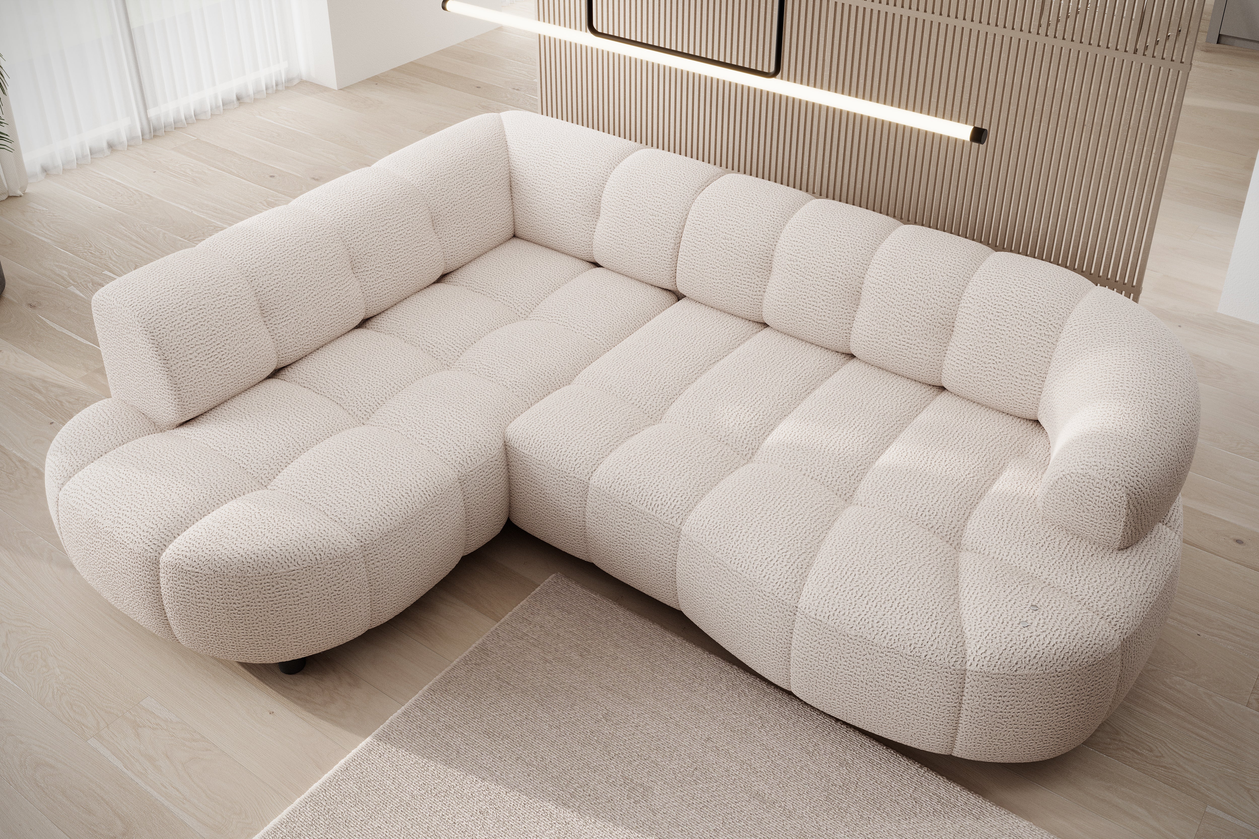 Divaani edestä katsottuna oikealle / Jaguar 3 pearl / Velpa L kulmasohva