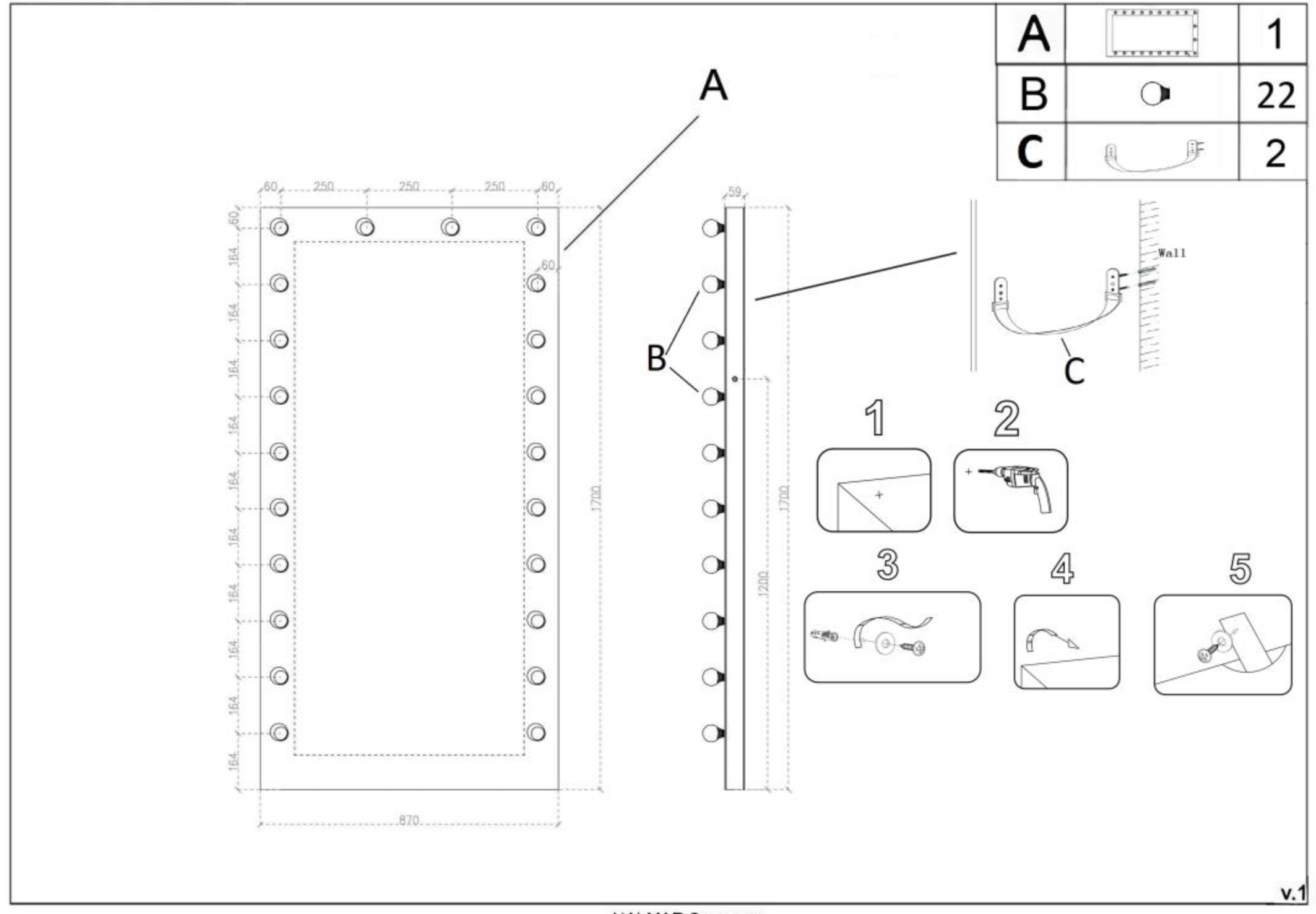 - Материалы: стекло (зеркало), MDF-задняя панель, LED-подсветка