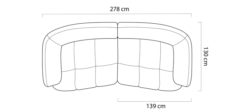 Besso XL 3 istuttava- kaareva sohva Eden kankaalla