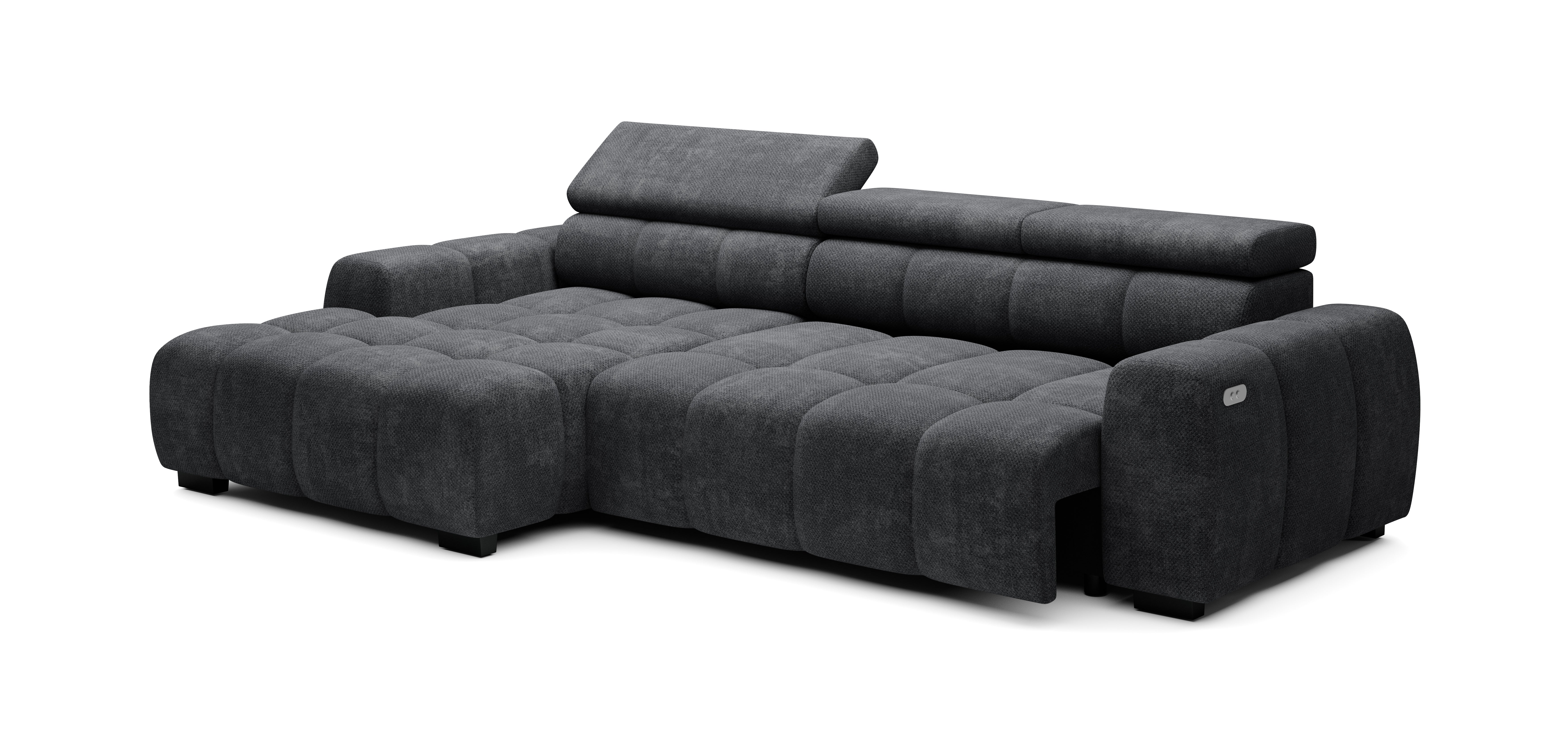 Divansektion sedd framifrån till vänster (som soffan på bilden) / Aphrodite 23 Svart/ Bull Divansoffa, elektriskt justerbar